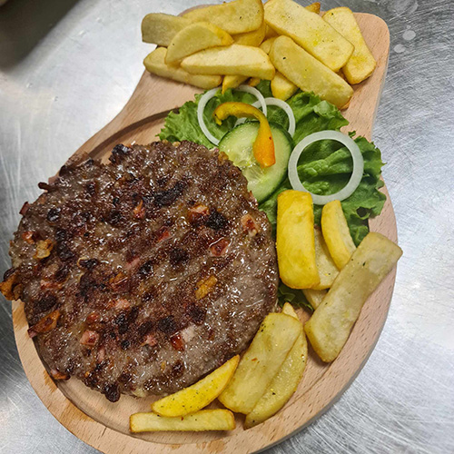 je luksuzna varijanta tradicionalne pljeskavice, obogaćena visokokvalitetnim sastojcima i kreativnim dodacima koji pružaju bogatiji i sofisticiraniji ukus.