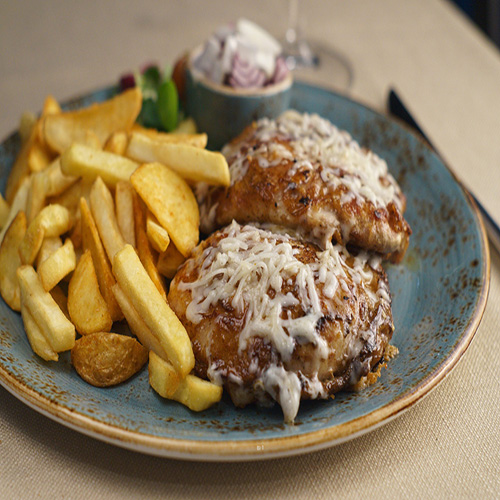 Sočno grilovana do granice maksimalnog ukusa koji se služi sa dodacima.