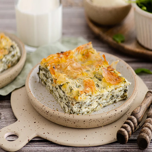 je tradicionalno jelo iz balkanske kuhinje koje se sastoji od slojeva tankih kora od testa, punjenih smesom od sira, jaja i pavlake.