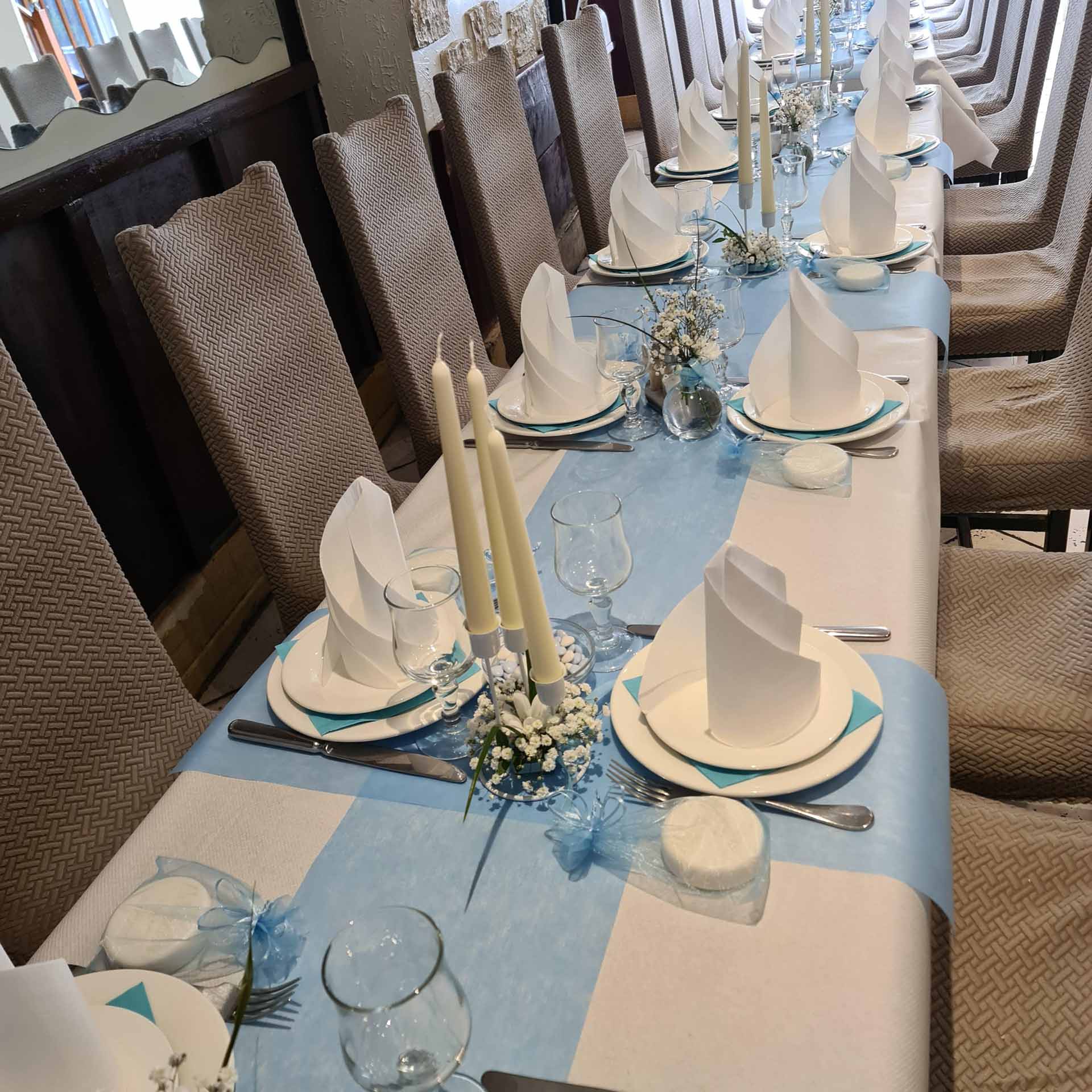 Naša sala za proslave nudi intimno i elegantno okruženje sa kapacitetom od 50 mesta, savršeno za vaše posebne događaje.