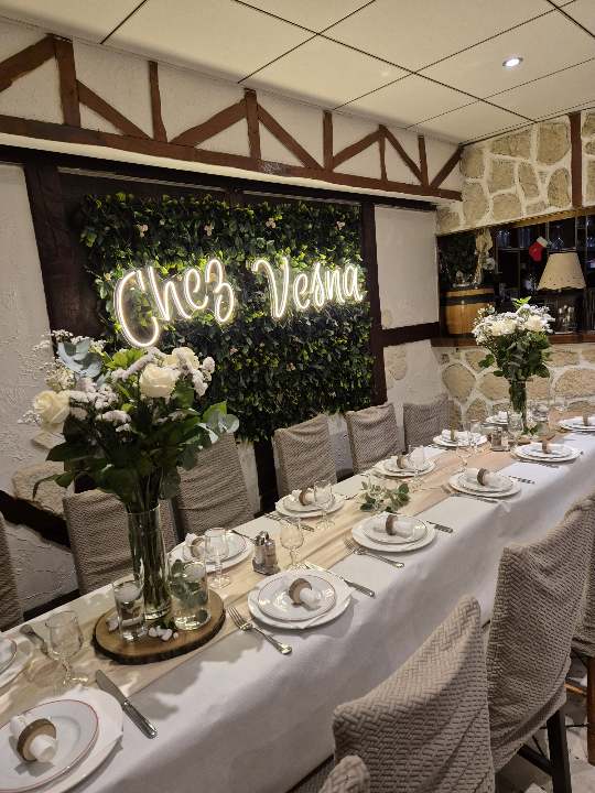 Restoran Chez Vesna impresionira svojim dvostrukim prostorom: sala za proslave sa kapacitetom od 55 mesta i restoranom koji može ugostiti do 50 gostiju. S ponosom organizujemo različite vrste proslava, uključujući rođendane, krštenja, veridbe i druge posebne događaje koji obogaćuju vaše životne trenutke. Važni datumi su nam važni, te se posvećujemo osiguravanju nezaboravnih iskustava za naše goste.
